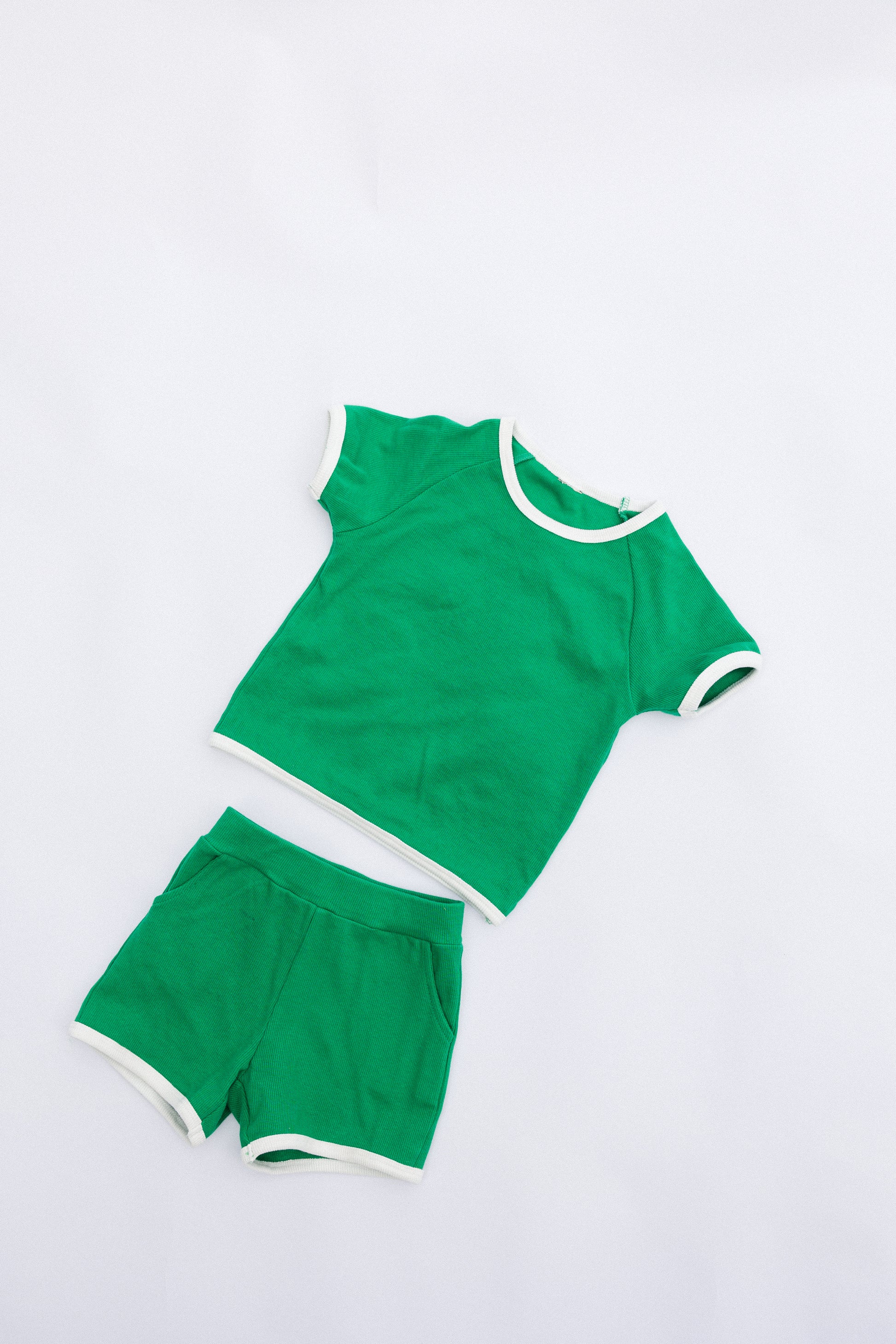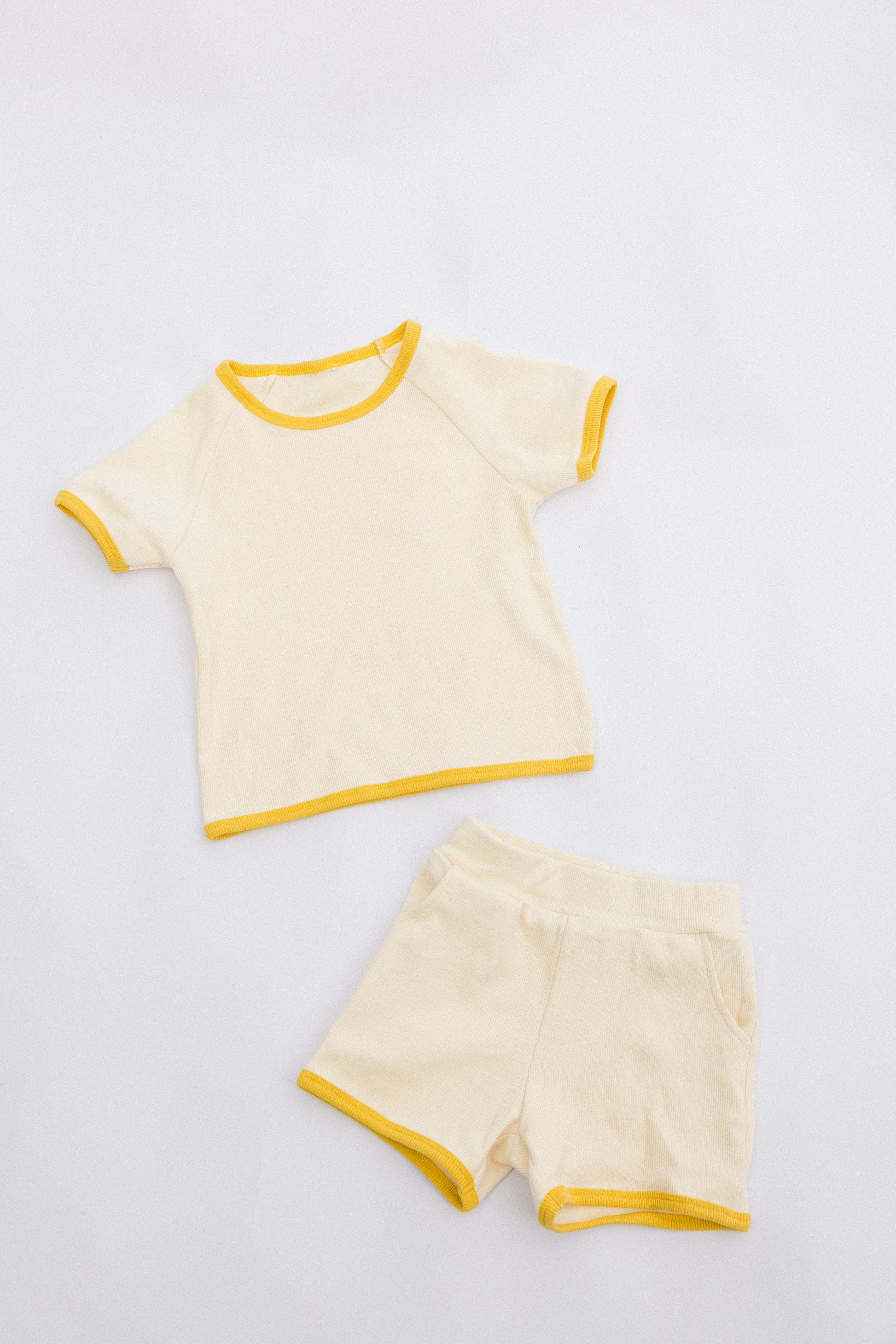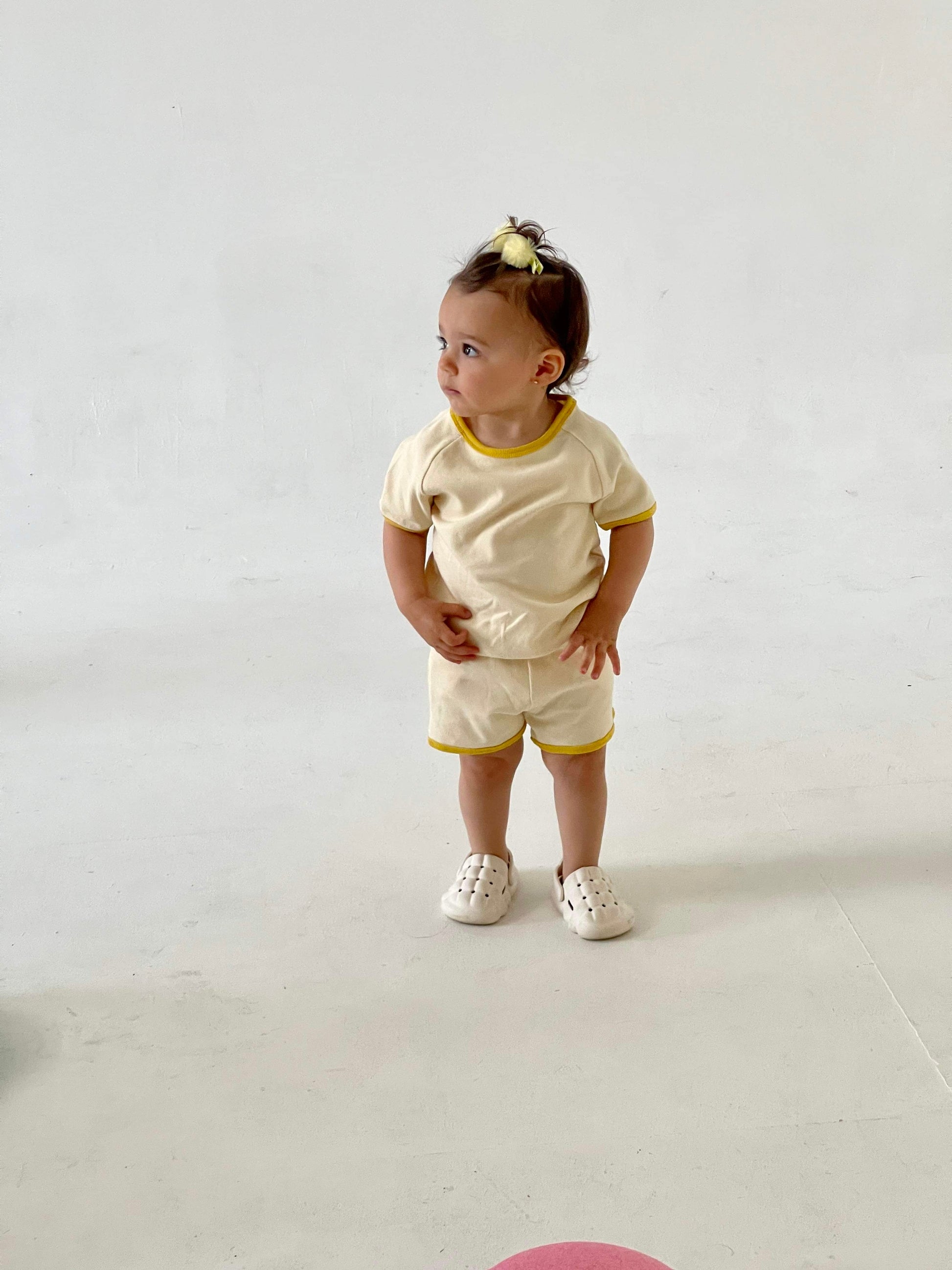 Get ready for a blast of fun and style with this dynamic duo – a vibrant t-shirt and matching shorts that are perfect for your little honey.