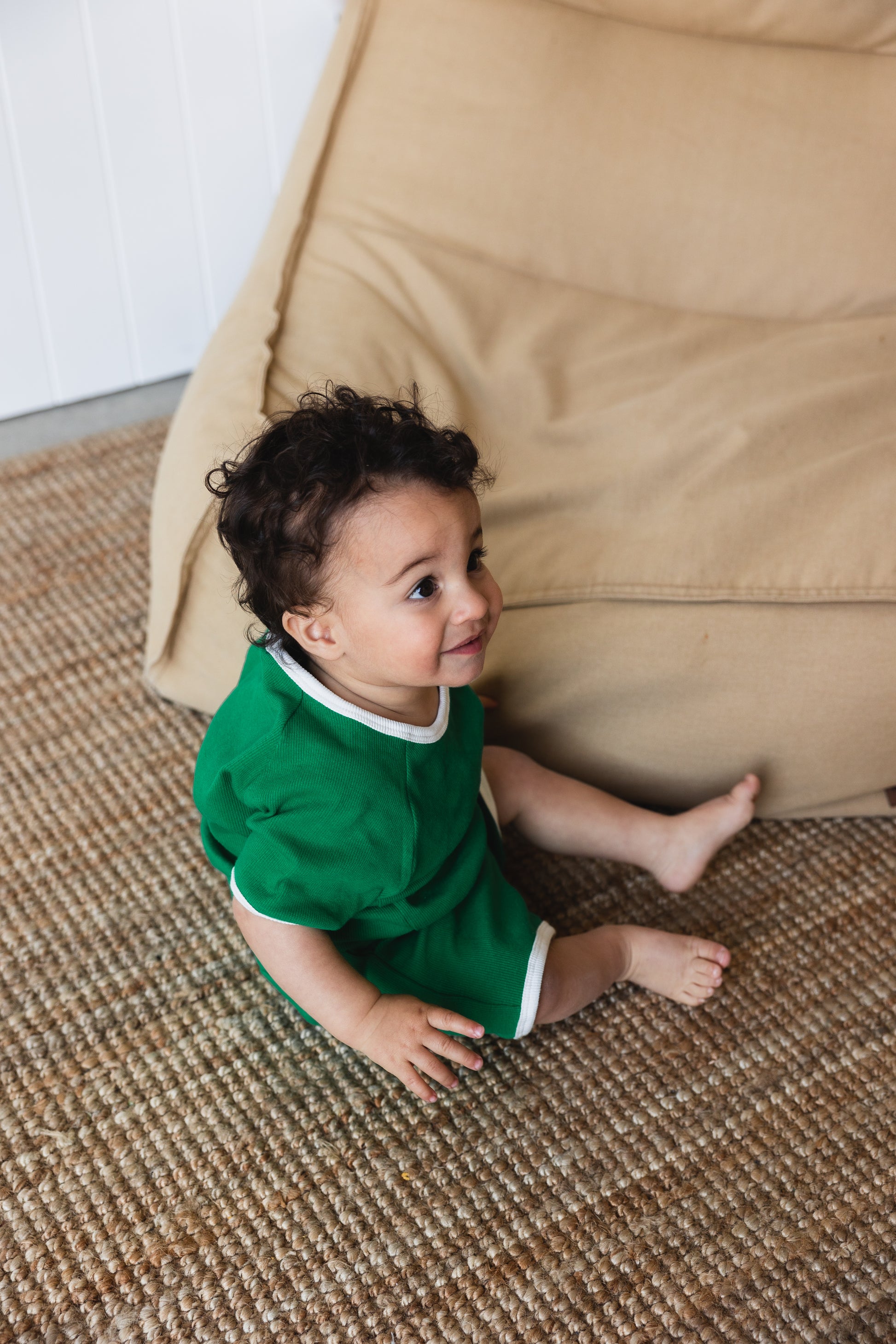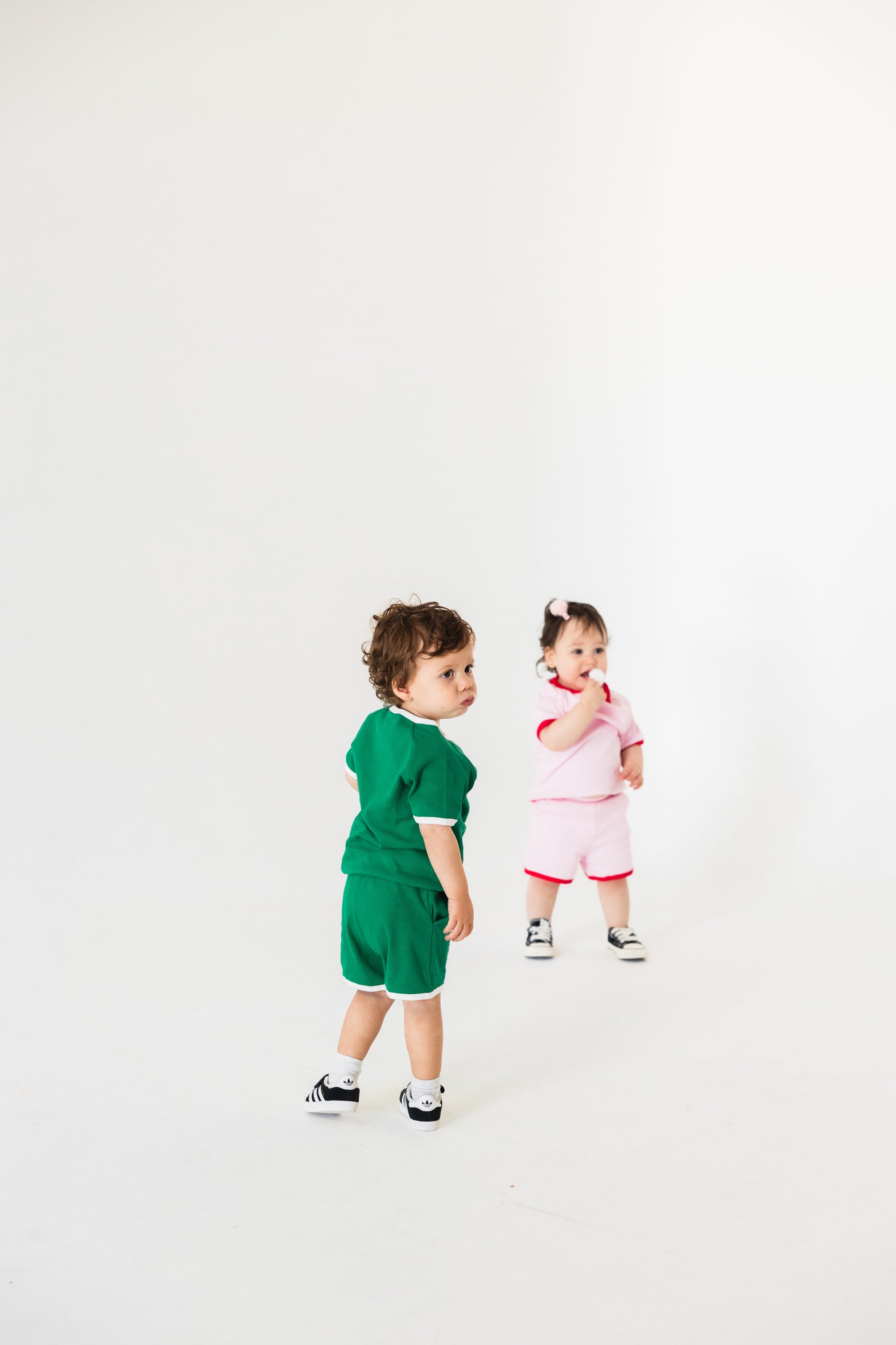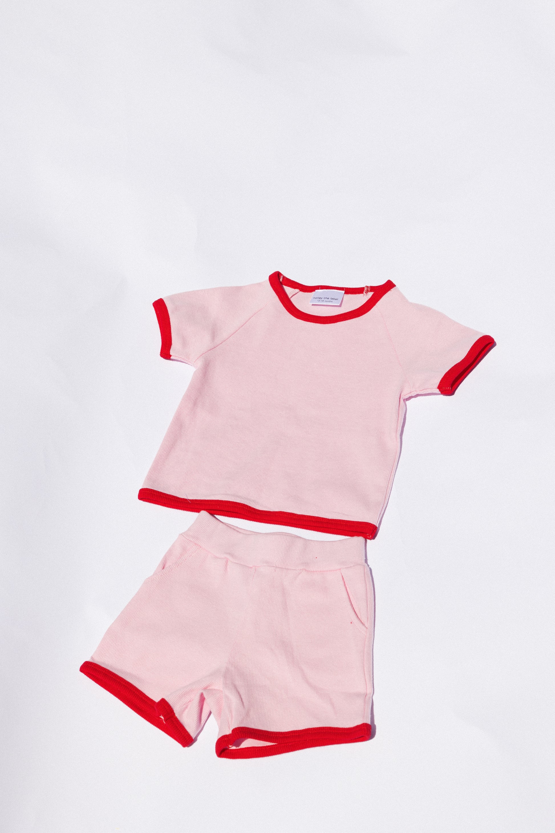 Get ready for a blast of fun and style with this dynamic duo – a vibrant t-shirt and matching shorts that are perfect for your little honey.